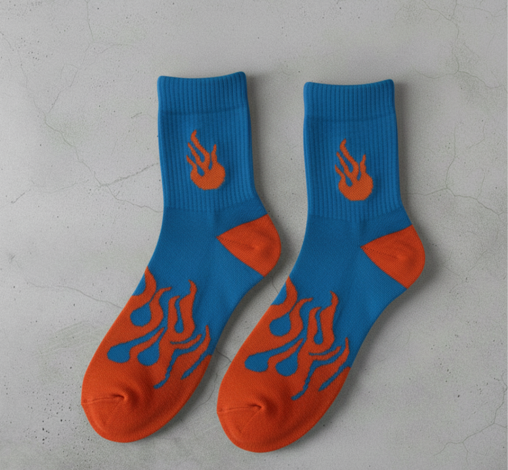 Add bold energy to your everyday look with our Blue Blaze Crew Socks, designed for comfort, durability, and standout style. Featuring a striking flame-inspired design, these socks bring a confident edge to daily essentials while remaining easy to style.